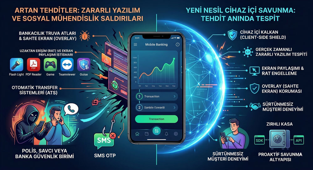 Bu karmaşık saldırı vektörlerini, sadece sunucu tarafındaki (server-side) kontrollerle veya SMS şifreleriyle durdurmak imkansızdır. Bankaların ve FinTek’lerin, tehdidi doğrudan kaynağında; yani kullanıcının cep telefonunun içinde tespit edip yok eden İstemci Tarafı (Client-Side) Kalkanlara ihtiyacı vardır.